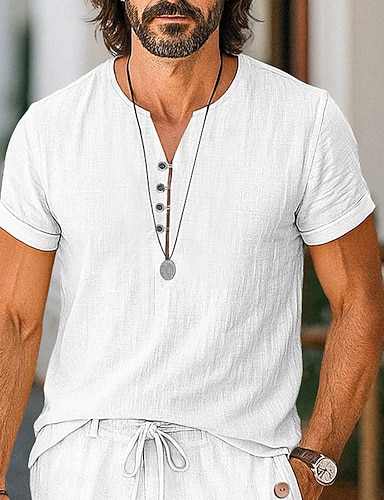 Homens Calção Shorts de linho Shorts de verão Botão Fenda Bolso frontal Tecido Conforto Respirável Comprimento do joelho Festa Ao ar livre Casual Moda Básico Branco Azul Marinha