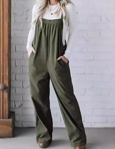 Mulheres Normal Macacão Ativo Côr Sólida Sem Manga Perna larga Decote Quadrado Bolsos Cintura Alta Diário Férias Normal Preto Verde Tropa Azul Marinha Verão