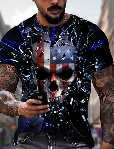 Camiseta Masculina Unissex Estampa de Caveira Camiseta Divertida Camiseta de Manga Curta Camiseta 3D Estampada Camiseta Gola Redonda Designer Casual Grande e Alto Diária Férias Preta Azul Verde Verão