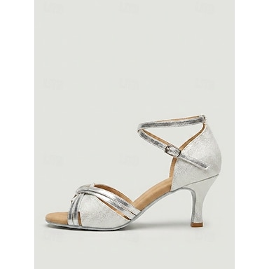 Mulheres Sapatos de Dança Latina Sapatos Salsa Interior Espetáculo Lantejoulas de Cristal com Brilho Salto Palmilha mais macia Salto Alto Peep Toe Correia Cruzada Adulto Prateado / Brilho cintilante