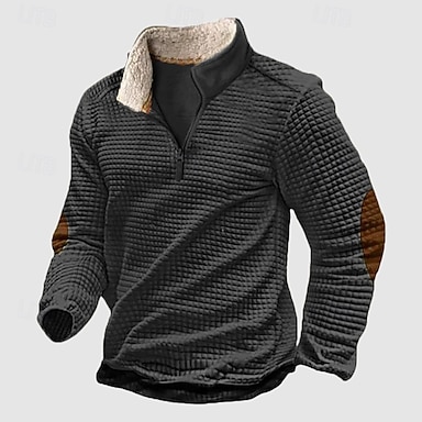 Homens Moletom Moletom Waffle Moletom com zíper Preto Azul Verde Cáqui Meio Zíper Tecido Estriado Quarter Zip Textura Diário Feriado Para Noite não imprimível Poliéster Roupa de rua Casual Outono