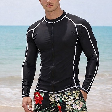 Homens Anti Atrito Top de banho Camisa de Natação Cor Sólida UPF50+ Respirável Manga Longa Roupas de Mergulho Surfe Canoagem Snorkeling Primavera