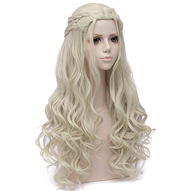 Perucas sintéticas Uniformes Trajes de carreira Princesa Encaracolado Ondulado Parte do meio Corte em Camadas Fabrico à Máquina Peruca 24 polegadas Dourado Suave Cabelo Sintético Mulheres Fantasias