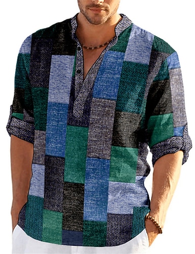 Homens Bloco de cor Estampa Geométrica Geometria Camisa Social camisa de botão Manga Longa Moda Roupa de rua Designer Ao ar livre Casual Diário Verão Outono Decote V Imprimir Verde Azulado Vermelho