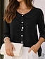 Mulheres Camiseta Tecido Moda Moderno Manga 3/4 Gola Redonda Tops regulares Diário Azul Preto Branco Rosa Vinho Verão