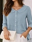 Mulheres Blusa Linho de algodão sintético Côr Sólida à moda Casual Manga 3/4 Gola Redonda Tops regulares Diário Azul Amarelo Rosa Roxo Cinzento Verão Primavera Outono