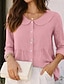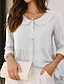 Mulheres Camisa Social Camisa casual camisa de botão Linho de algodão sintético Botões Côr Sólida Tecido Férias Moda Diário Coleira Peter Pan Tops regulares Streetwear Praia Feriado Preto Branco