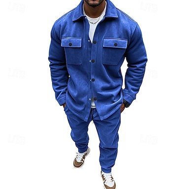 Homens Moletom Conjunto de roupas Lapela Ao ar livre Diário Esportes Com Cordão Abotoar Bolsos Tecido Preto Vermelho Azul Marinha Poliéster Roupas Esportivas Moda Roupa de rua Primavera