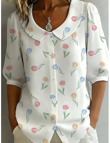 Mulheres Camisa Social camisa de botão Blusa Botões Floral à moda Clássico Moderno Manga Longa Colarinho de Camisa Tops regulares Diário Feriado Para Noite Branco Rosa Verde Rosa cor de Rosa Verão