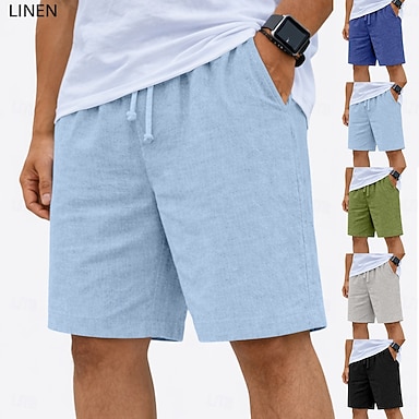 Homens Calção Shorts de linho Shorts de verão Shorts de praia Cintura elástica Com Cordão Botões Tecido Conforto Respirável Comprimento do joelho Ao ar livre Diário Praia Férias Moda Preto Branco Sem