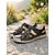 Tênis masculino de lona bege com painéis laterais estampados, respirável e estiloso, ideal para resorts ao ar livre, viagens e passeios casuais.