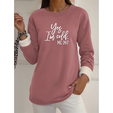 Mulheres Pijama de moletom com forro de lã Moletom Pullover camisolas Imprimir Letra Quente Roupa de rua Casual Manga Longa Gola Redonda Tops regulares Casual Casa Dia a Dia Azul Preto Rosa Rosa
