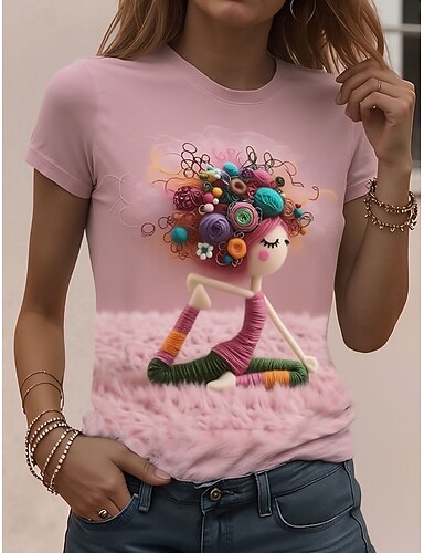 Mulheres Camiseta Imprimir Gráfico Letra à moda Casual Manga Curta Gola Redonda Tops regulares Diário Final de semana Azul Preto Branco Rosa Verão
