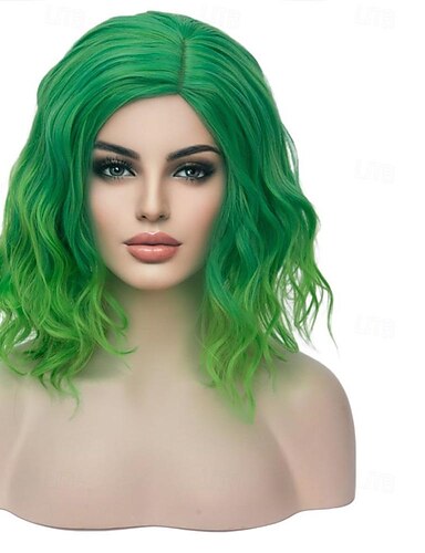 Perucas Verdes Longa Sintética Liso Verde Irlandês Resistentes ao Calor Sem Renda Frontal Perucas com Cabelo de Bebê Glueless Peluca para Festa Cosplay de St Patrics para Mulheres da Moda 22