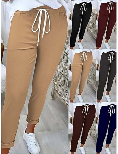 Mulheres Calças Calças cônicas Calça casual Moda Roupa de rua Básico Comprimento total Cintura Alta Tecido Com Cordão Bolsos Cintura elástica Conforto Micro-Elástica Diário Férias Rua Cinza escuro