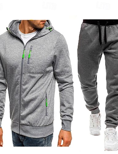 Homens Moletom Conjunto de roupas Conjunto de moletons Capuz Ao ar livre Diário Esportes Com Cordão Zip Up Bolsos Tecido Preto Azul Marinha Marron Poliéster Roupas Esportivas Moda Roupa de rua Outono