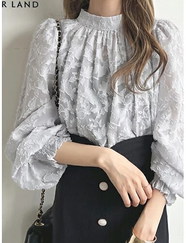 Mulheres Camisa Social Blusa Tops de chiffon Franzido Renda Floral Ativo à moda Manga Longa Gola Alta Tops regulares Diário Praia Feriado Preto Rosa Azul Céu Cinza Claro Damasco Verão Primavera