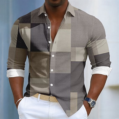 Homens Bloco de cor Retalhos Camisa Social camisa de botão Manga Longa Moda Casual Diário Ao ar livre Streetwear Primavera Outono Aberto para a Lateral Impressão 3D Camisa tipo linho Azul Marron Verde