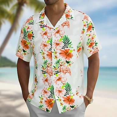Homens Flamingo Estampa floral Flores Camisa Social Camisa cubana Camisa havaiana Manga Curta Havaiana Férias Feriado Roupa de Praia Verão Primavera Camisa com gola de acampamento Impressão 3D Rosa