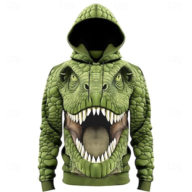 Homens Animal Crocodilo 3D Moletons Moletom Legal Festa Manga Longa Gola Redonda Bandagem Streetwear Branco Verde Com Cordão Outono Inverno Designer S M L XL XXL XXXL