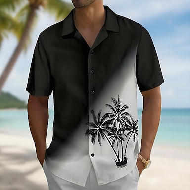 Homens Coqueiro Cor gradiente Plantas Tropicais Camisa havaiana camisa de botão Camiseta Aloha Manga Curta Havaiana Férias Roupa de Praia Verão Primavera Aberto para a Lateral Impressão 3D camisas de