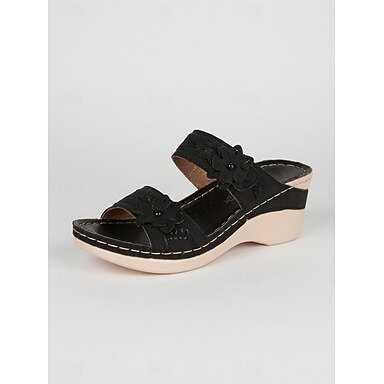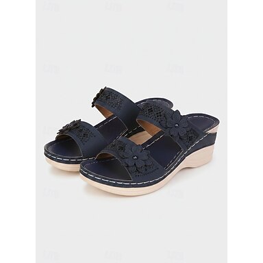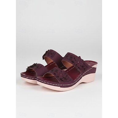 sandálias femininas de cunha com detalhes florais e suporte de arco confortável - perfeitas para passeios casuais de verão