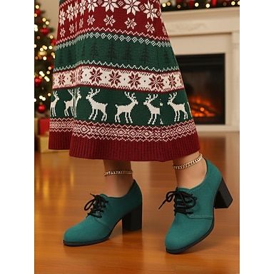 Sapatos femininos verdes de salto com cadarço – sapatos elegantes de salto alto para o Natal, festas de fim de ano, passeios casuais e moda de inverno