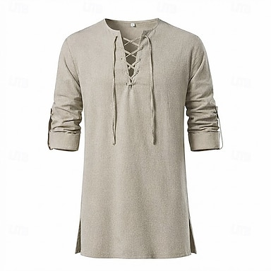 Medieval Renascentista Camisa Manga Comprida Pirata Viking Fantasia Homens Viking Pirata Dia Das Bruxas Carnaval Espetáculo LARP Ren Faire Adulto Camisa