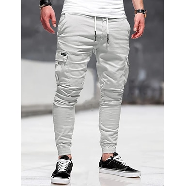 Homens Calças Calça casual Calça Elástica Bolsos Tecido Conforto Macio Ao ar livre Diário Para Noite Moda Casual Preto Cinzento Claro
