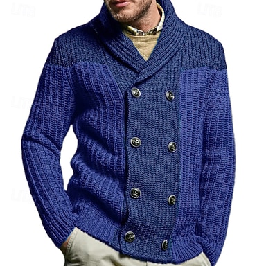 Homens Sueter Cardigan Suéter Cortado Suéter de malha Estriado Tricotar Tops regulares Abotoar Tecido Lapela Moda Clássico Férias Roupa Diária Roupa Outono Inverno Azul M L XL