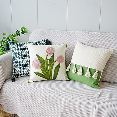 Capas de almofada com estampa floral simples de tulipas verde-claras bordadas, almofada de apoio lombar para sofá-cama ou escritório.