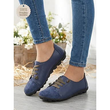 Sapatilhas femininas marrons de couro com amarração e modelagem ampla – calçados macios e confortáveis para caminhada, com sola flexível antiderrapante, ideais para o dia a dia, viagens e uso
