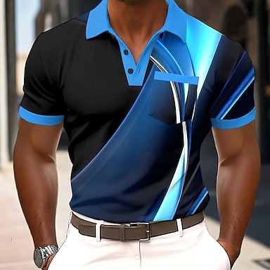 Homens Geométrico Linha Camisas Polo Waffle Manga Curta Camisas polo Camisas de colarinho Business casual Ao ar livre O negócio Roupa Esportiva Impressão 3D Botões Verão Azul