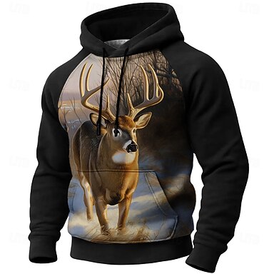 Homens Veado Moletom 3D Caça Manga Longa Com Capuz Ao ar livre Esportes Azul Preto Marron Mangas Raglã Outono Inverno Designer S M L XL 2XL 3XL