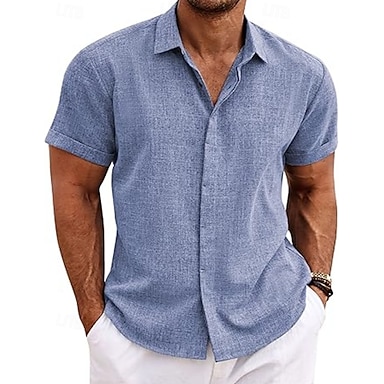 Homens Camisa de linho Camisa casual Camisa de algodão e linho camisa de botão Padrão Praia Férias Preto Branco Verde Claro Rosa Manga Curta Lapela Verão Roupa Fivela