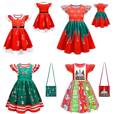 Boneco de Neve Elfo saco Fantasia de Natal Fantasias de Cosplay Para Meninas Traje Cosplay Gráfico Estampa Fantasia de Natal Crianças Natal Ano Novo Festa Vestido Bolsa