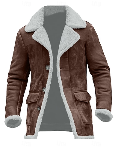 Homens Jaqueta de camurça sintética Casaco de tosquia Casaco de lã Jaqueta Corta-Vento Casual / Diário Jaqueta Corta-Vento Bolsos Gola de lã Inverno Côr Sólida Vintage Moda Lapela Padrão Marron Casaco