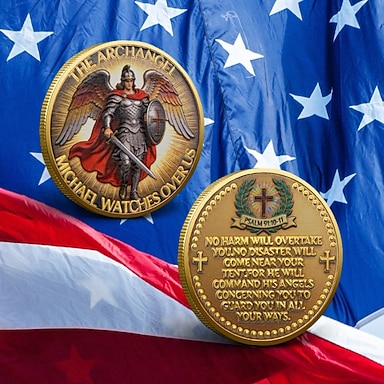Moeda comemorativa do Arcanjo Miguel, Salmo 91:10-11, item colecionável cristão inspirador, presente de proteção espiritual, lembrança de fé religiosa para entes queridos.