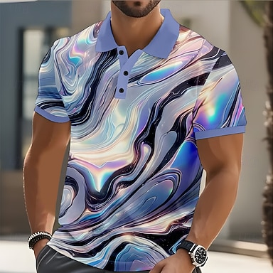 Homens Abstrato Geométrico Pólo Manga Curta Camisas polo Lapela Casual Roupa Esportiva Roupa Diária Impressão 3D Botões Verão Azul Céu Roxo Cinzento Escuro