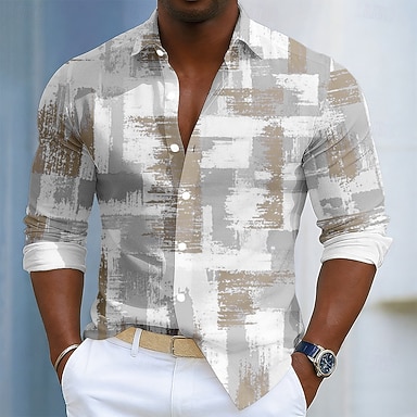 Homens Tamanho Grande Camisa Social Grande e Alto Estampas Abstratas Aberto para a Lateral Botões Manga Longa Primavera Verão Esportes Moda Roupa de rua Designer Ao ar livre Férias Blusas