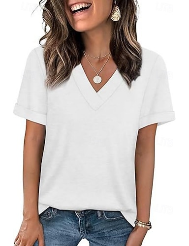 Mulheres Camiseta T-shirt Moda à moda Clássico Manga Curta Decote V Tops regulares Diário Para Noite Final de semana Preto Branco Rosa Damasco Verão Primavera