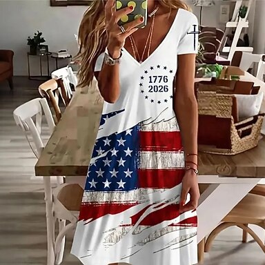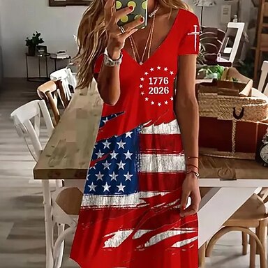 Dia da Independência Americana Mulheres Camiseta Imprimir Floral Gráfico Bandeira à moda Clássico Casual Manga Curta Gola Redonda Decote Redondo Tops regulares Diário Azul Vermelho Verão Primavera