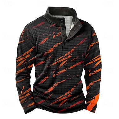 Homens Geométrica Waffle Moletom Diário Clássico Casual Colarinho Chinês Ao ar livre Casa Trabalho Presente Azul Amarelo Laranja Verde Botões Outono Inverno Designer S M L XL XXL XXXL
