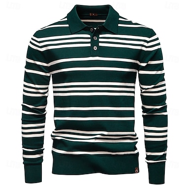Homens Pulôver suéter suéter polo Tricotar Tops regulares Listas Botões Tiras Horizontais Colarinho polo Vintage Diário Escola Casa Roupa Primavera Outono Preto Marron S M L