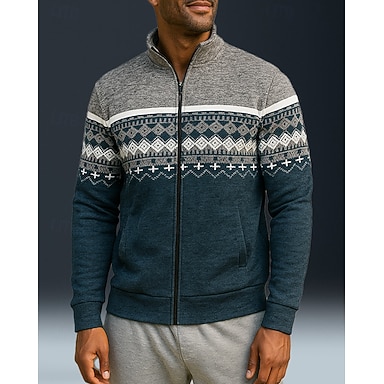 Homens Jaqueta Bomber Casaco esportivo Jaqueta do time do colégio Ao ar livre Esportes Quente Bolsos Outono Inverno Tecido Moda Roupa de rua Colarinho Chinês Padrão Azul Oceano Vermelho Verde cáqui