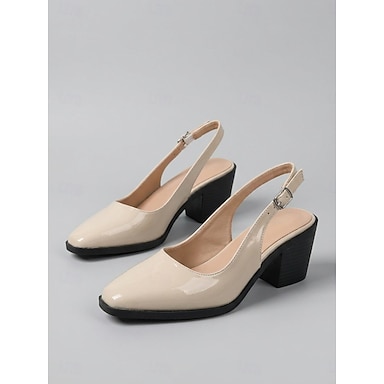 Sapatos de salto bloco nude femininos - calçados profissionais para o escritório e reuniões de negócios. &roupas de trabalho elegantes