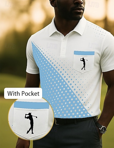 Homens Circulo Golf Camisas Polo Esportivas Manga Curta Camisas polo Camisas de colarinho Casual Ao ar livre Esportes Roupa Diária Impressão 3D Verão Azul Céu Branco Azul