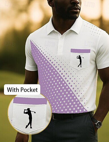 Homens Geométrica Camisa de golfe Manga Curta Camisas polo Camisas de colarinho Business casual Roupas de férias Traje formal Roupas para festivais Botões Impressão 3D Verão Roxo cáqui Cinzento