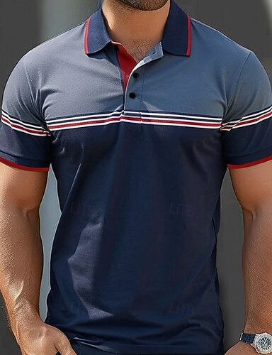 Homens Pólo Trabalho O negócio Coleira de gaivota Manga Curta Férias Vintage Bloco de cor Listrado Bloco de cor Listas Verão Primavera Preto Branco Azul Marinha Pólo
