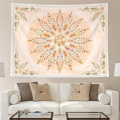 Tapeçaria de parede com mandala floral, girassóis e folhas laranjas, decoração rústica de outono, padrão botânico, arte boho para sala de estar, quarto, decoração de casa, cenário de Ação de Graças.